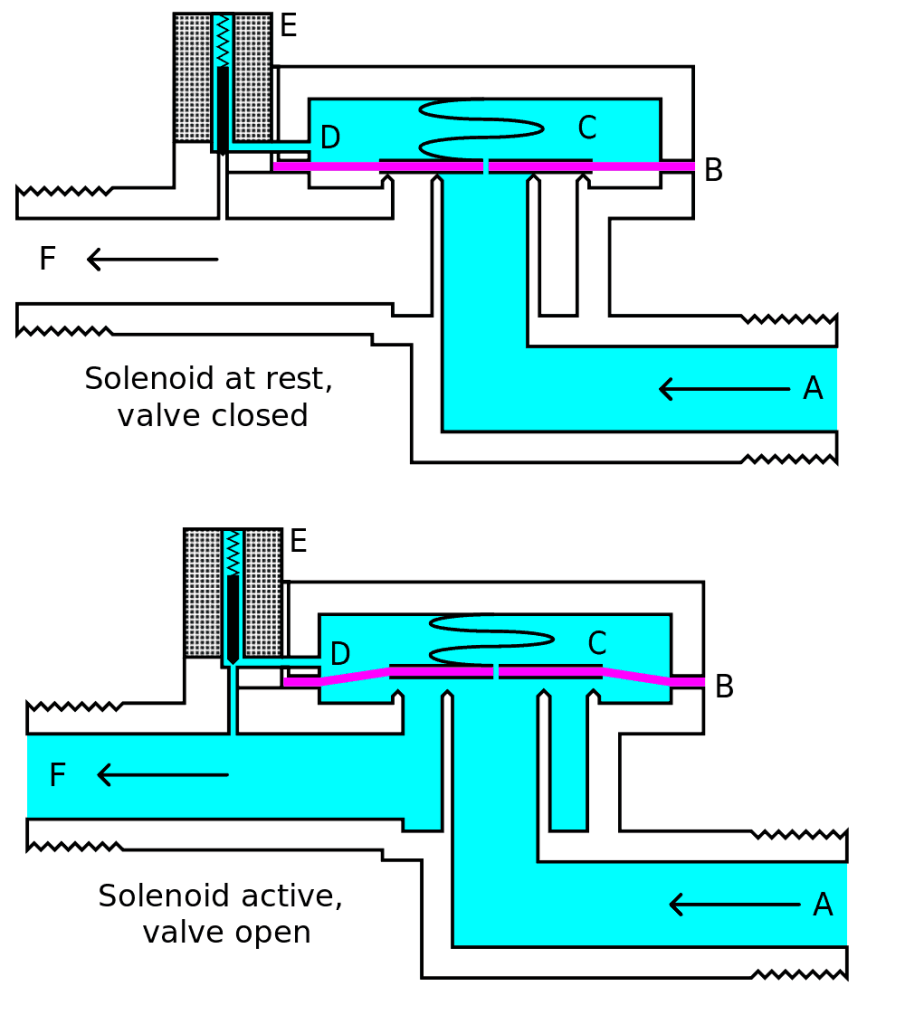 Uno de los elementos básicos de los circuitos «electro – neumáticos» son las electroválvulas o válvula solenoide. Se trata de una válvula eléctrica utilizada para controlar el paso de gas (sistemas neumáticos) o fluidos (sistemas hidráulicos). La apertura o cierre de la válvula se basa en impulsos electromagnéticos de un solenoide, un tipo de electroimán. Las válvulas solenoides ofrecen funciones de apertura o cierre total y no se pueden utilizar para la regulación del flujo de gas o fluido, solo para permitir o no su paso.