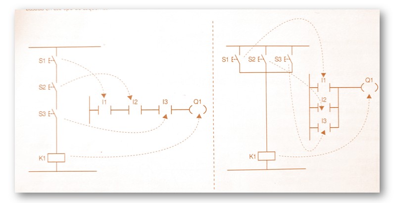 A partir del esquema eléctrico de mando, el alumno podrá establecer (sobretodo en los comienzos del aprendizaje) las similitudes existentes entre los dos esquemas de mando el analógico (eléctrico) y el digital (PLC).